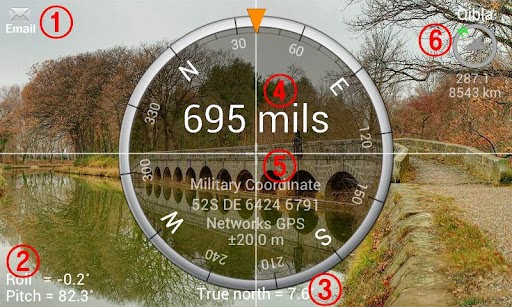 La precisione della bussola è legata alle prestazioni del proprio dispositivo. Se i risultati non dovessero essere precisi, si prega di controllare di non essere all'interno di un forte campo magnetico. Inoltre, ci sono diverse opzioni per calibrare il dispositivo.