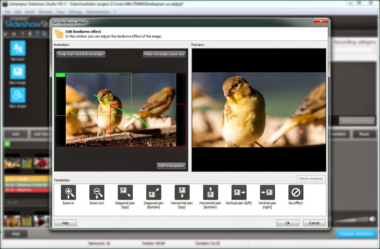 Effetti liberamente definibili, panning e zoom (Ken Burns)