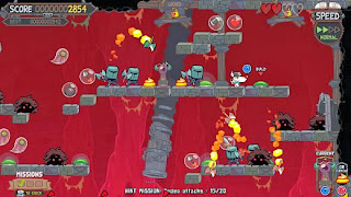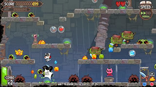 To get rid of your enemies, simply jump on them, or place towers to attack and poos to slow down, use fire knives or bombs, ice winds to freeze enemies and golden eggs for Armageddon ! You can also control time: slow it down in danger moments and accelerate it to increase the difficulty and score more points. How fast will you play?
