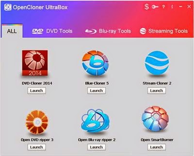 OpenCloner UltraBox is all-in-one software to copy, rip and burn DVD/Blu-ray movies. It also enables you to download/capture online movies and convert them to various video and audio formats. It has six programs including DVD-Cloner, Blue-Cloner, Open DVD ripper, Open Blu-ray ripper, Open SmartBurner and Stream-Cloner. They can be operated conveniently on OpenCloner UltraBox's main interface without downloading again. Once OpenCloner UltraBox is registered successfully, the six programs included will be registered automatically. With this excellent software, you can easily realize perfect multimedia enjoyment.