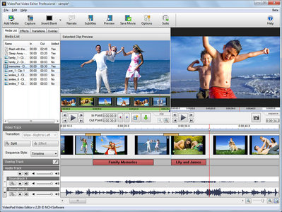 VideoPad makes editing videos easy. This full featured video editor lets you create professional looking videos with transitions, music and narration in minutes. VideoPad is one of the fastest video stream processors on the market. Discover the power of drag and drop. Drop files into your editing project and drag videos onto your timeline and adjust the in and out points of a video clip. Edit video from any camcorder. VideoPad lets you capture video directly from a DV Camcorder, VHS player or Webcam. You can also import video files directly. VideoPad supports just about any video file format including .avi, .wmv, .3gp, .wmv and .divx.