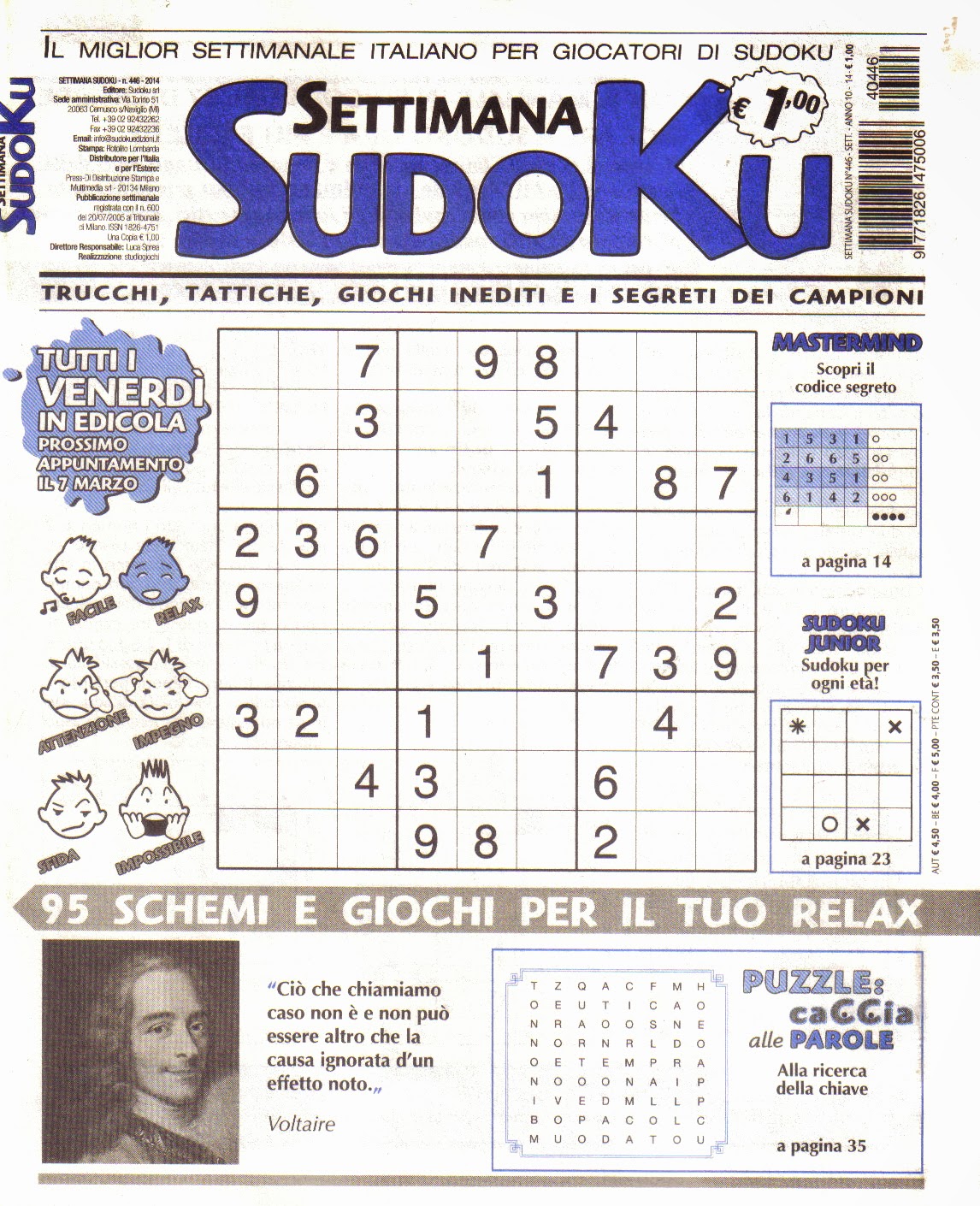 Settimana Sudoku n. 446 del 27 Febbraio 2014