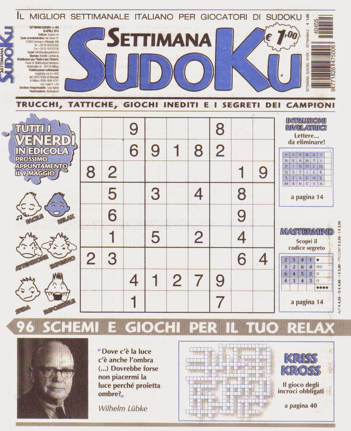 Settimana Sudoku n. 455 - 01 Maggio 2014
