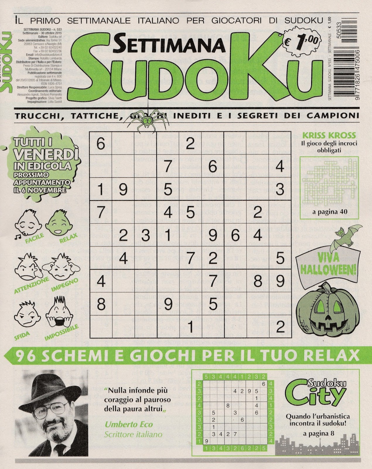 Settimana Sudoku n. 533 - 30 ottobre 2015